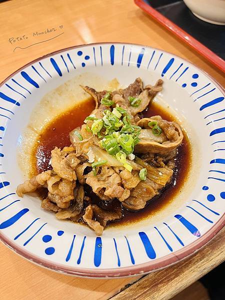 老公今天點牛丼,另外單點一個牛燒肉盤,牛燒肉的口味甜鹹感很強,炙燒香氣也很重,屬於口味蠻重的一款單品。